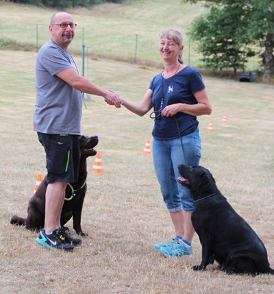 Stolz gibt "Nala" den Dummy ihrem Partner Sven in die Hand,